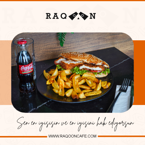 Sütlü sandiviç ekmeği, baharatlı panelenmiş tavuk parçaları, marul, domates, kornişon turşu, eritilmiş kaşar peyniri ve yanında patates kızartması ile servis edilir.